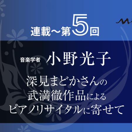 「アダージョ・ソステヌート」といえばベートーヴェンのソナタ《月光》やラフマニノフの《ピアノ協奏曲第2番》の第2楽章を思い起こす人も多いと思う。このゆっくりとたゆとうテンポに武満は試行錯誤の上にたどり着いた。ベートーヴェンがこの曲を聴いたらどう思うだろうか。武満は作曲をし始めた頃を回顧して「ベートーヴェンの音楽は“生”の深いところで私を鼓舞し続けるが私の肉体としての音感は、実際にはベートーヴェンの音楽からは遠くかけ離れたものであった」と書いている。逆にベートーヴェンからしたら武満の音感は遠クカケ離レテマスネ、と言うかもしれない。